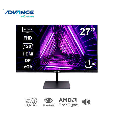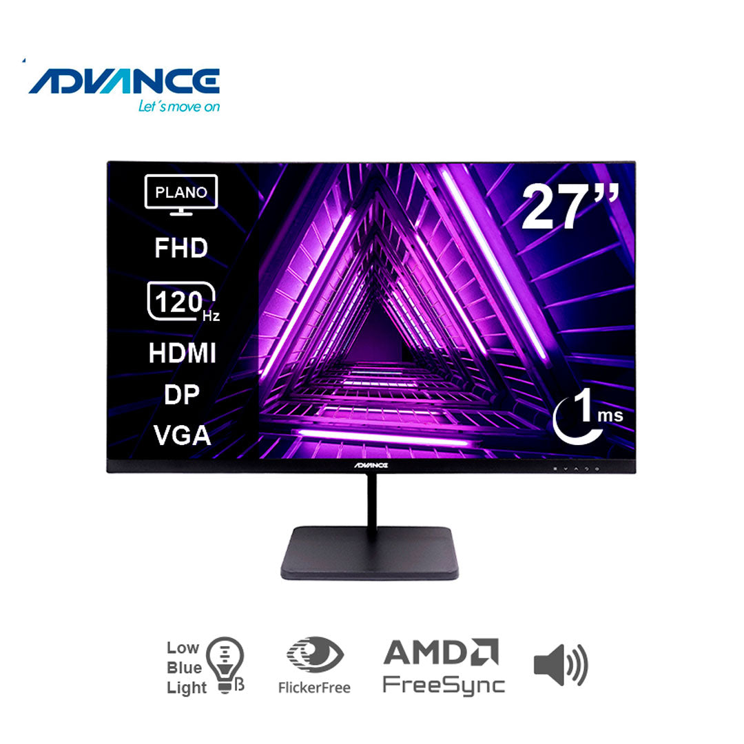 Advance ADV-2754S Monitor plano 27" FHD IPS 120Hz 1ms HDMI DP VGA Parlantes Negro