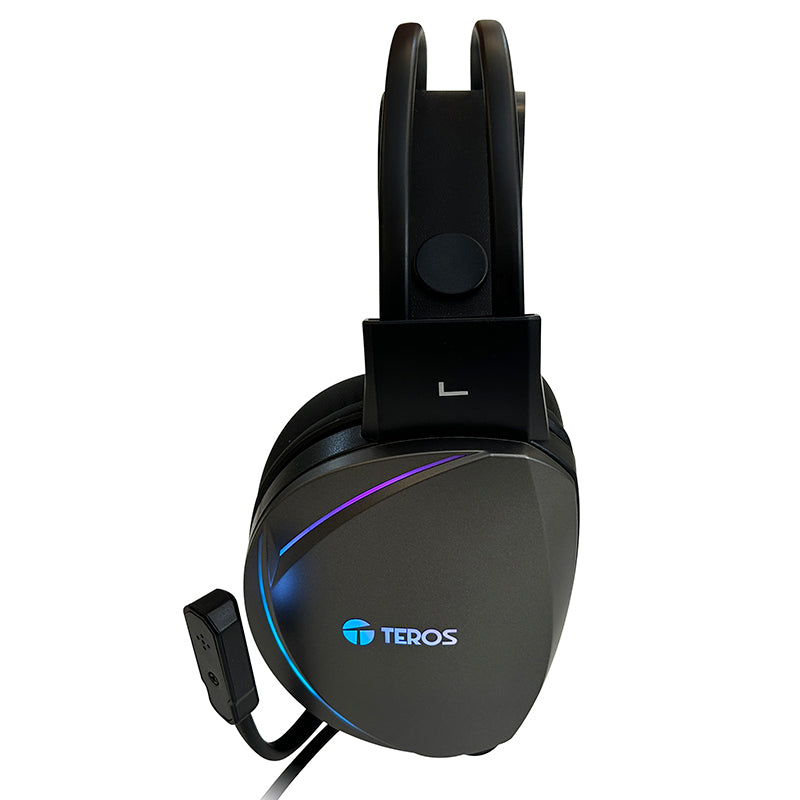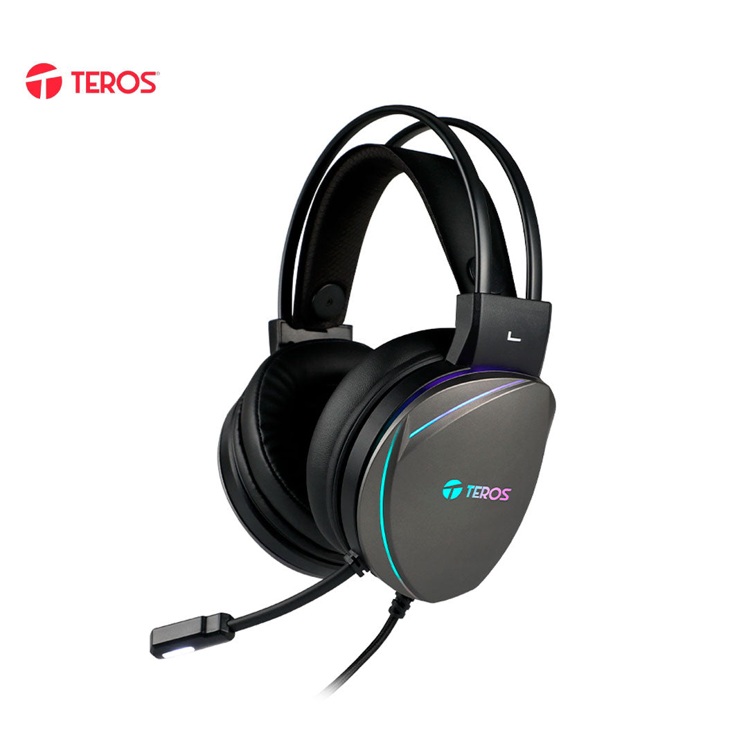 Auriculares Gaming TEROS TE-8170N estéreo 7.1, micrófono, conector USB, Negro, Luces RGB