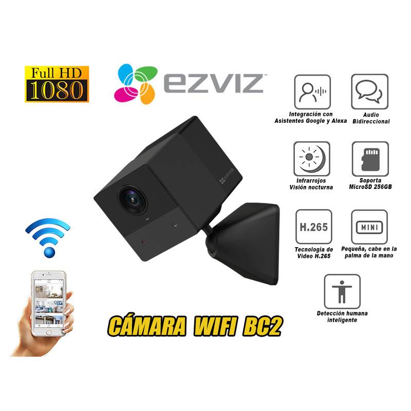 Camara de vigilancia wifi inalambrico EZVIZ BC2 IP mini cubo de bateria 50 dias full hd 2mp 1080 IR 5m parlante y microfono incorporado uso interior hogar - CS-BC2