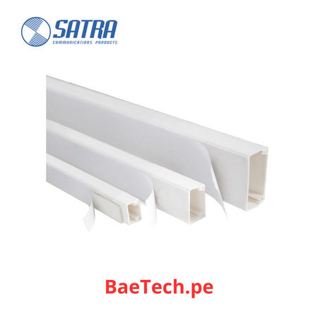 Las canaletas de pared SATRA con adhesivo, vienen en varios tamaños, color blanco y tienen una longitud de 2mts.
