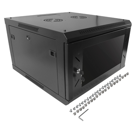 FINEN WMG6606 GABINETE DE PARED 6-RU 368 X 600 X 500+100MM (ABATIBLE, PUERTA C/VIDRIO DE SEGURIDAD)