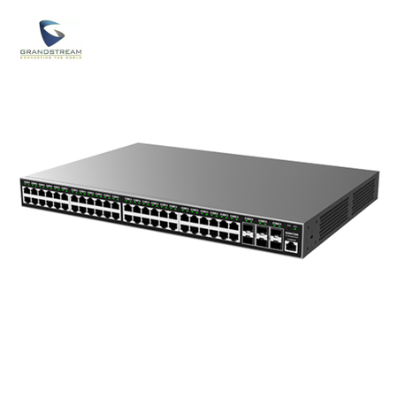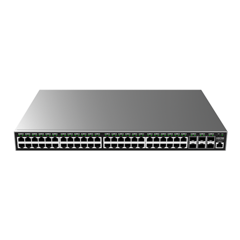 El GWN7806(P) es un conmutador de red administrado de capa 2+ de alto rendimiento con 48 puertos que permite a las pequeñas y medianas empresas construir redes comerciales escalables, seguras e inteligentes que sean completamente administrables.