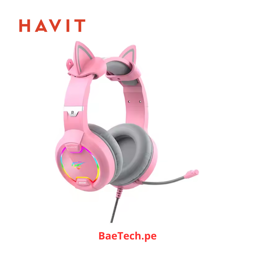 HAVIT H2233D - AUDIFONOS GAMING ROSADO - OREJAS DE GATO - RGB - 3.5MM