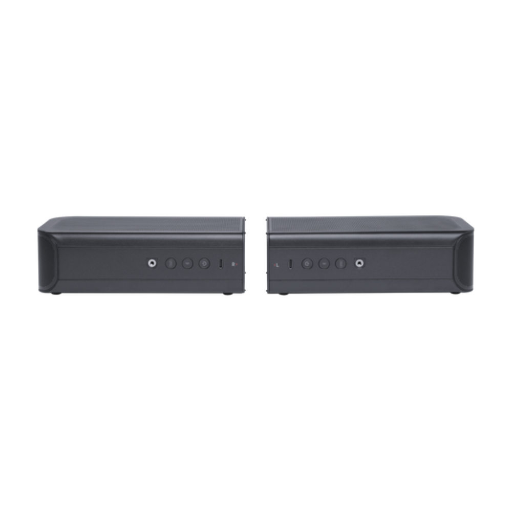 Disfruta de un sonido envolvente real sin la molestia de los cables y conexiones de alimentación adicionales. Solo tienes que colocar los dos altavoces envolventes desmontables alimentados por batería detrás de ti y dejarte llevar por el increíble sonido.