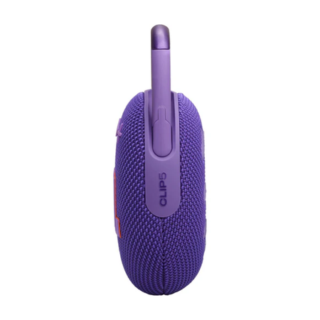 l altavoz Bluetooth ultraportátil JBL Clip 5 es lo suficientemente pequeño como para llevarlo en una mano, pero que no te engañe su tamaño: es grande donde de verdad importa. Un mosquetón ancho y totalmente integrado permite engancharlo a casi cualquier cosa. El potente amplificador y el radiador pasivo ofrecen un sonido JBL Pro más alto y potente, así como unos graves contundentes. Una sola carga te ofrece hasta 12 horas de reproducción e incluso más si Playtime Boost está activado. Su certificación IP67 confirma su resistencia al agua y al polvo, por lo que estará encantado de acompañarte en tu próxima excursión o acampada. Combina dos Clip 5 para obtener un sonido estéreo o conéctalo al instante con varios altavoces compatibles mediante JBL Auracast para obtener un sonido aún mayor en más espacio. Además, está disponible en varios colores, para que encuentres siempre uno que se adapte a tu estilo. Con el JBL Clip 5, cada día es una aventura.
