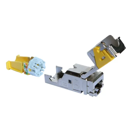 Conectores RJ45 para paneles rectos y angulares Conexión sin herramientas, con marcado 568 A/B Suministrado con etiquetas de colores Cumple con las normas ISO/IEC 11801 edición 3.0 (2017) y EIA/TIA 568 C2-1 Para instalar en casetes de paneles rectos y angulares