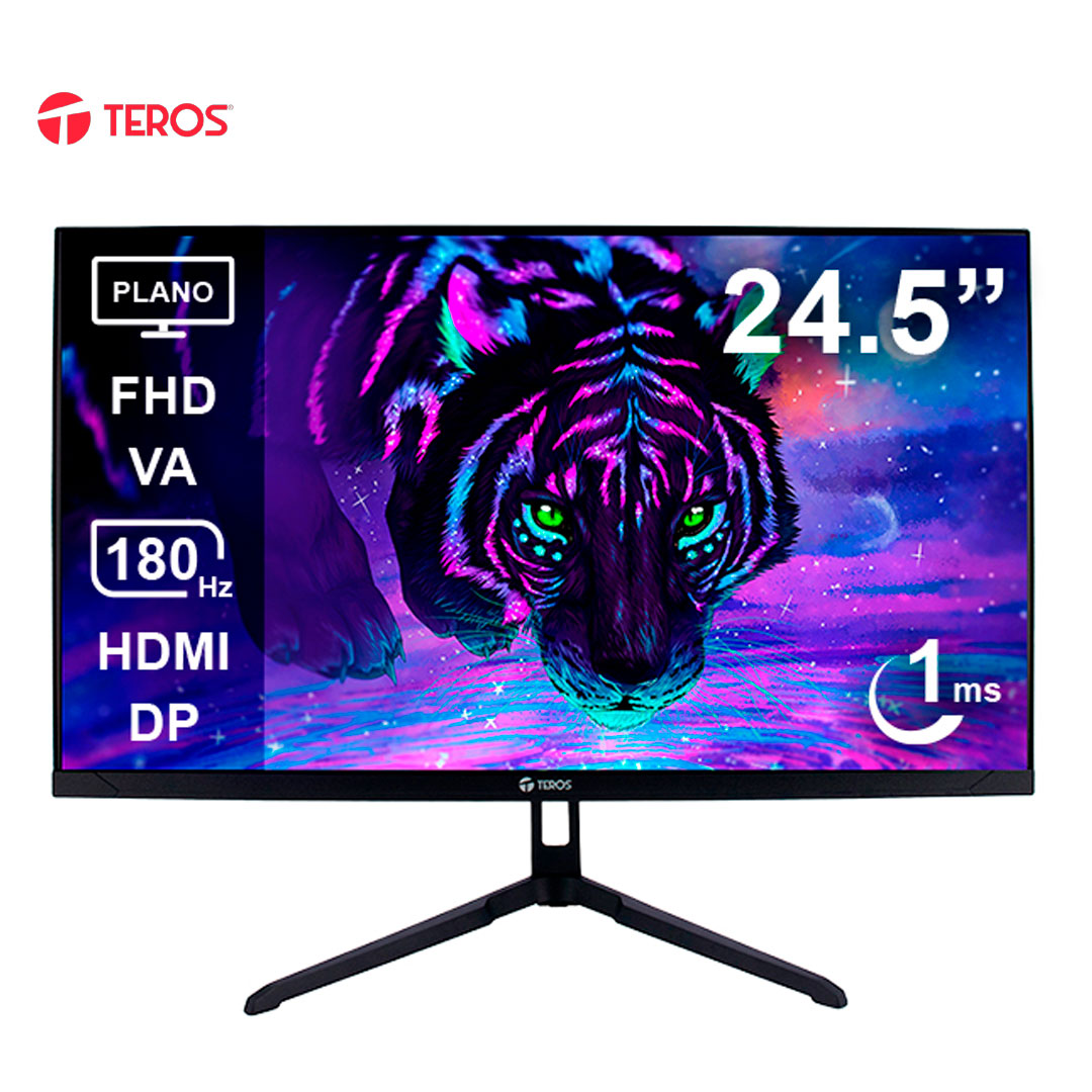 Monitor plano gaming TEROS TE-2475G 24.5" FHD VA 180Hz 1ms HDMI DP AUDIO OUT negro