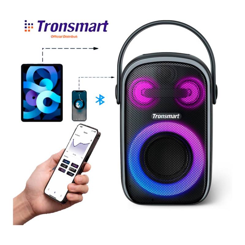- El parlante Bluetooth Tronsmart Halo 100 - 60W es un dispositivo versátil y potente que te permitirá disfrutar de tu música favorita con una calidad de sonido excepcional. Con su potencia de salida de 60W, experimentarás un sonido potente y claro en cada nota y detalle de la música. Gracias a la conexión Bluetooth 5.0, podrás reproducir música de forma inalámbrica desde tu smartphone, tablet u otros dispositivos compatibles con un alcance de hasta 20 metros.
