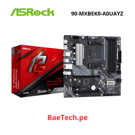 Placa base para computadora de escritorio ASRock A520M Phantom Gaming 4 - Conjunto de circuitos integrados AMD A520 - Socket AM4 - Micro ATX - 128GB DDR4 SDRAM RAM máxima - DIMM, UDIMM - 4 x Ranuras de memoria - Gigabit Ethernet - HDMI - DisplayPort - 4 interfaces sx SATAN