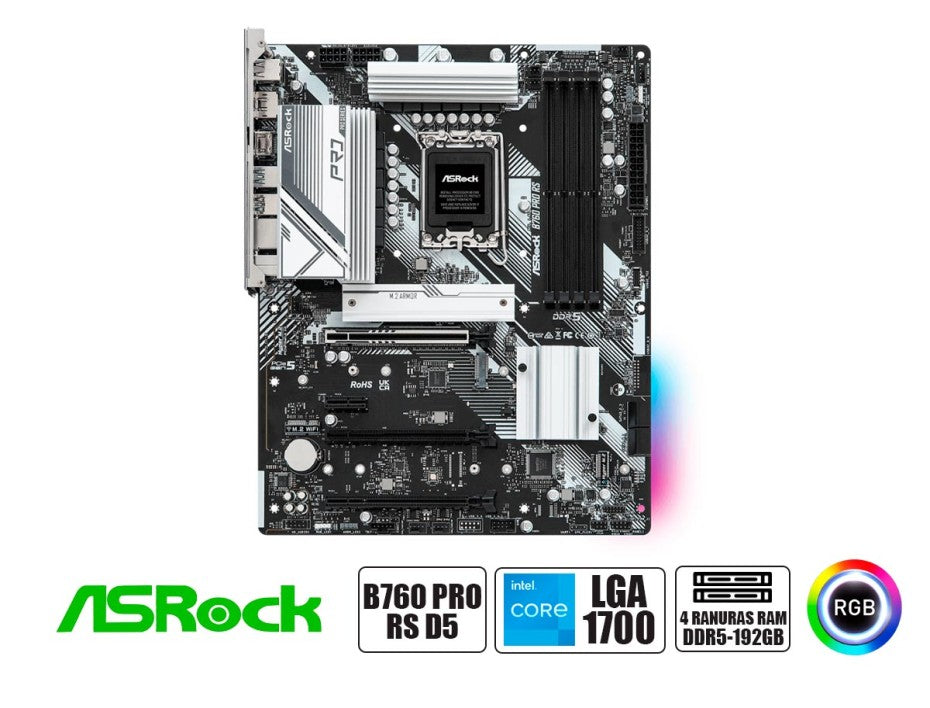 PLACA MADRE ASROCK B760 PRO RS D5- PARA PROCESADORES INTEL LGA 1700, MEMORIA DDR5 (90-MXBKS0-A0UAYZ)