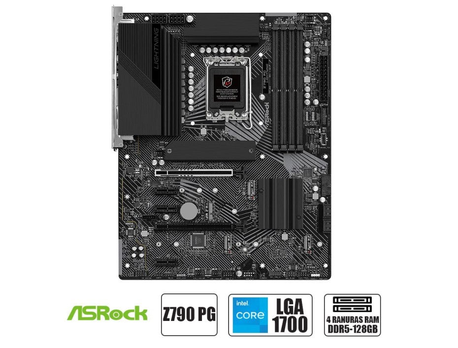 PLACA MADRE ASROCK Z790 PG LIGHTNING, D5, PARA PROCESADORES INTEL LGA 1700, 4 RANURAS DE MEMORIA DDR5 BUSS 4800 MHZ, 13VA GENE. (90-MXBKA0-A0UAYZ)