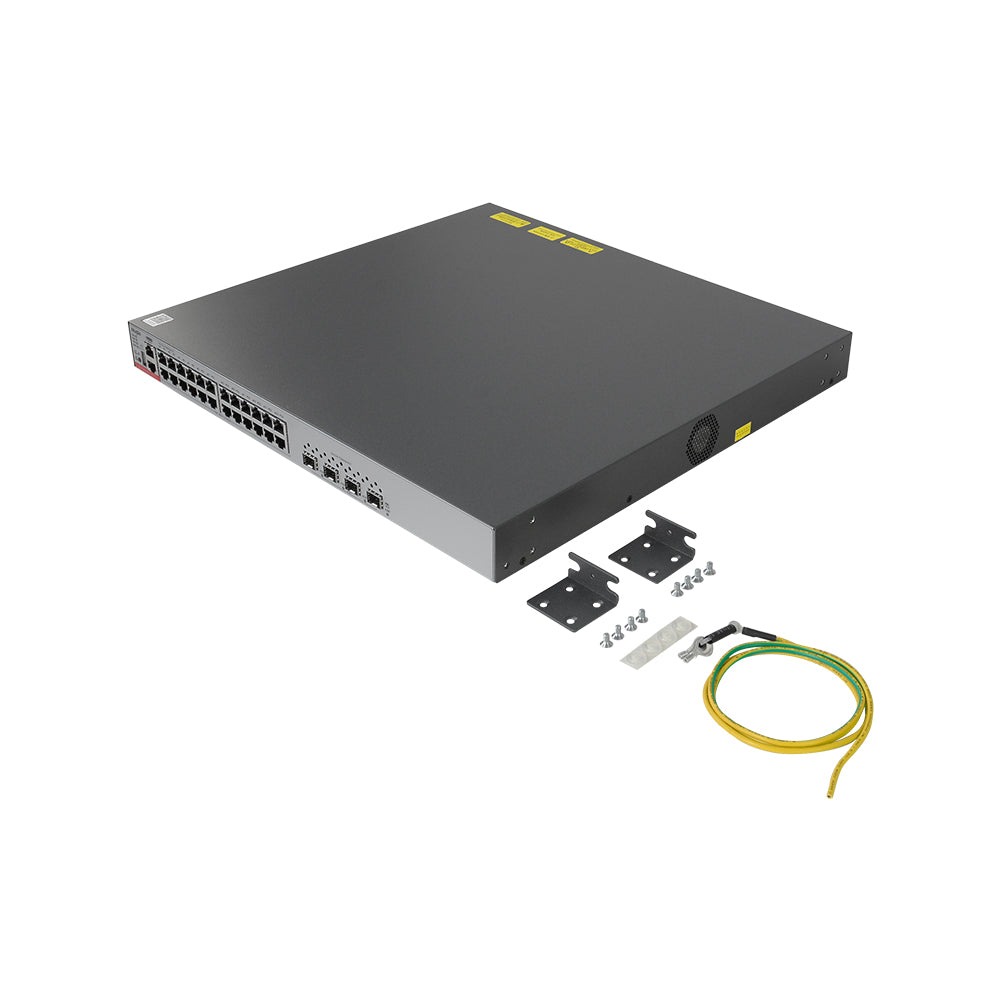 24 puertos 10/100/1000BASE-T, compatibles con PoE/PoE+ 4 puertos SFP+ 1GE/10GE |