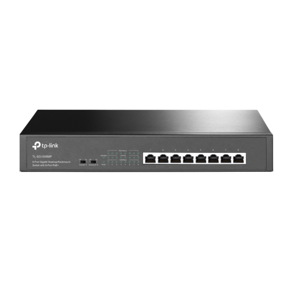 - Equipado con 8 puertos PoE+ para transferir datos y energía por un mismo cable.