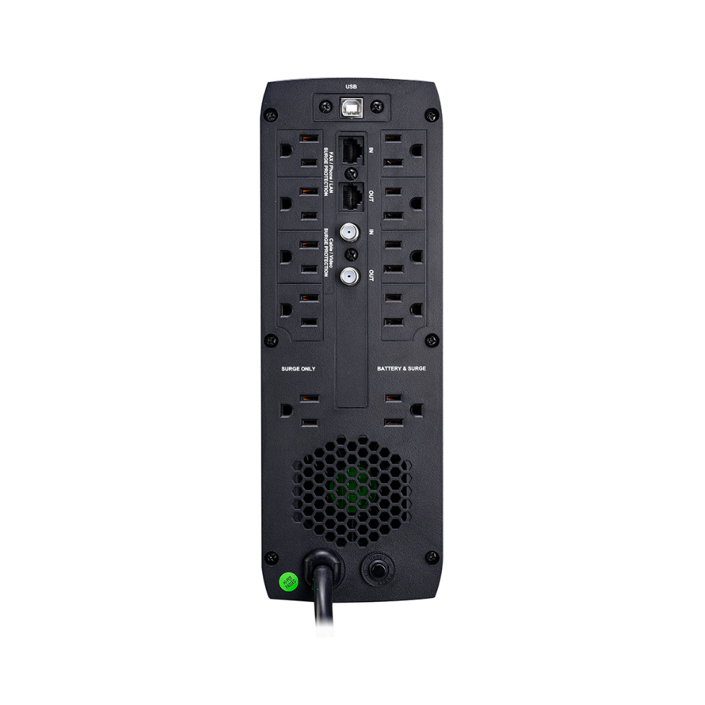 Permanezca conectado, seguro y en control con las funciones de supresión de sobretensión, regulación de voltaje y filtraje de ruido integradas en todos los tomacorrientes del UPS