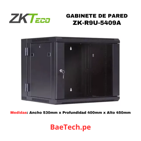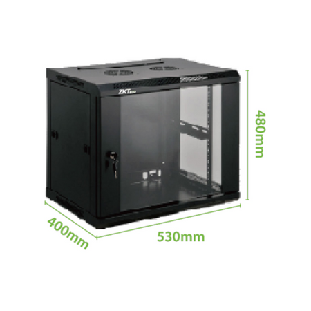 ZKTECO ZK-R9U-5409A, Gabinete de Pared 9RU Puerta de vidrio. Ancho 53cm x Profundidad 40cm x Alto 45cm